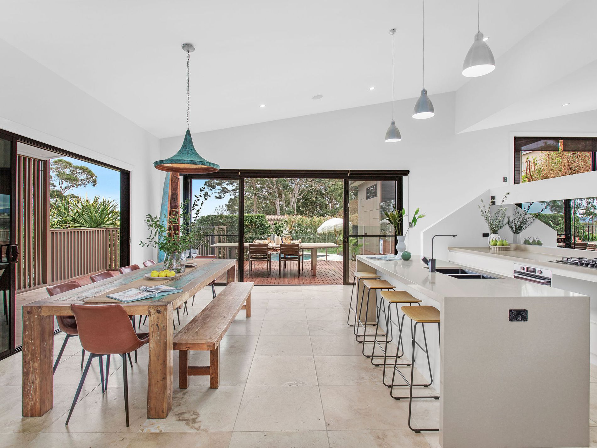 Located on a sought-after cul-de-sac just moments from the ocean shores of North One Mile Forster, the architecturally designed home boasts commanding street appeal. A variety of striking materials combining the proud, multi-level façade resonates with a unique sense of chic that follows you throughout the home.