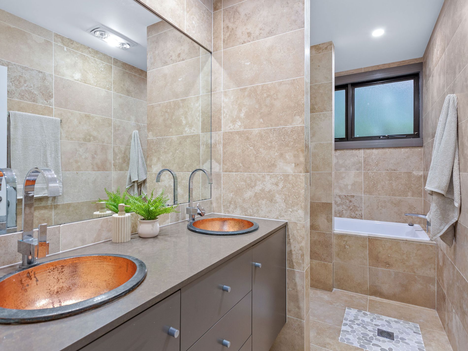 Four generous bedrooms on the second level all have ceiling fans and are serviced by two bathrooms, both are visually stunning with floor-to-ceiling tiles and designer sinks. The Parent's Retreat features a master bedroom, an en-suite, a home office, ample wardrobe or storage cupboards, and a private covered balcony area - the views are just stunning from up here.